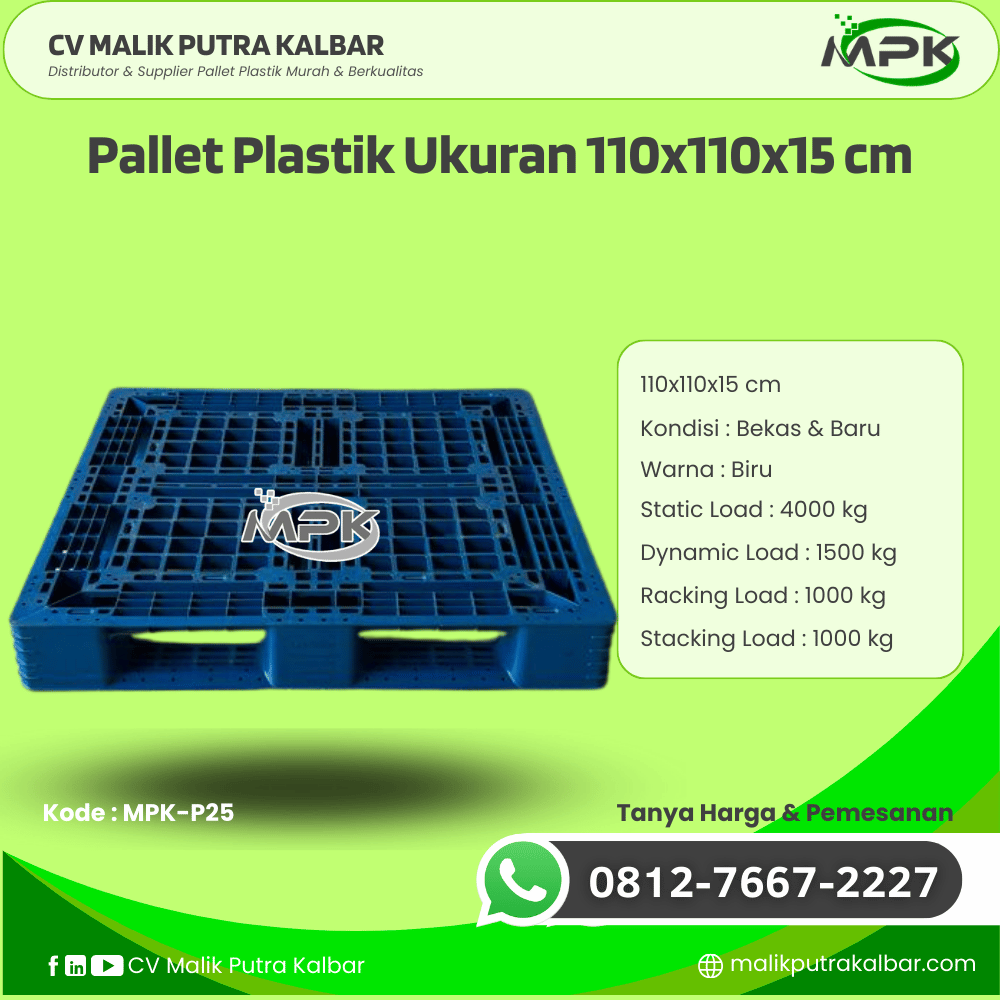 Dalam dunia logistik dan industri yang dinamis, kebutuhan akan material handling yang andal dan efisien menjadi sangat penting. Sebagai perusahaan yang bergerak di bidang penjualan pallet plastik berkualitas, CV Malik Putra Kalbar menghadirkan solusi unggulan melalui produk Pallet Plastik Bekas/Baru Ukuran 110x110x15 dengan kode produk MPK-P25.