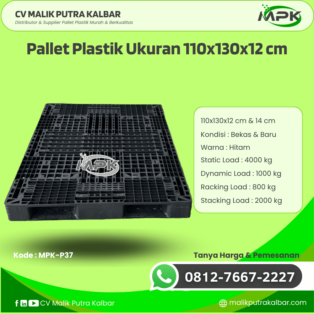 Dalam dunia industri modern, kebutuhan akan peralatan handling yang efisien dan tahan lama menjadi salah satu prioritas utama, terutama dalam hal distribusi dan penyimpanan barang. Untuk mendukung hal tersebut, CV Malik Putra Kalbar menawarkan Pallet Plastik Ukuran 110x130x12 โ MPK-P37, sebuah solusi logistik yang kuat, serbaguna, dan hemat biaya untuk berbagai lini usaha Anda.